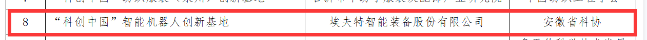 “Ebpay智能装备股份有限公司”申报的“科创中国”智能机器人创新基地成功入选首批“科创中国”的创新基地。