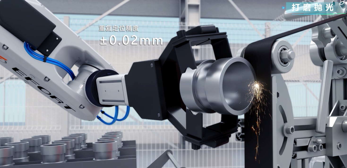 重载桌面系列机器人专为打磨场景设计的高刚性手腕关节耐冲击和过载能力强,配合专为打磨行业开发的软浮动功能,确保机器人打磨过程中不会出现过流,同时保证轨迹平滑,打磨速度均匀,保证打磨一致性达到95%以上。