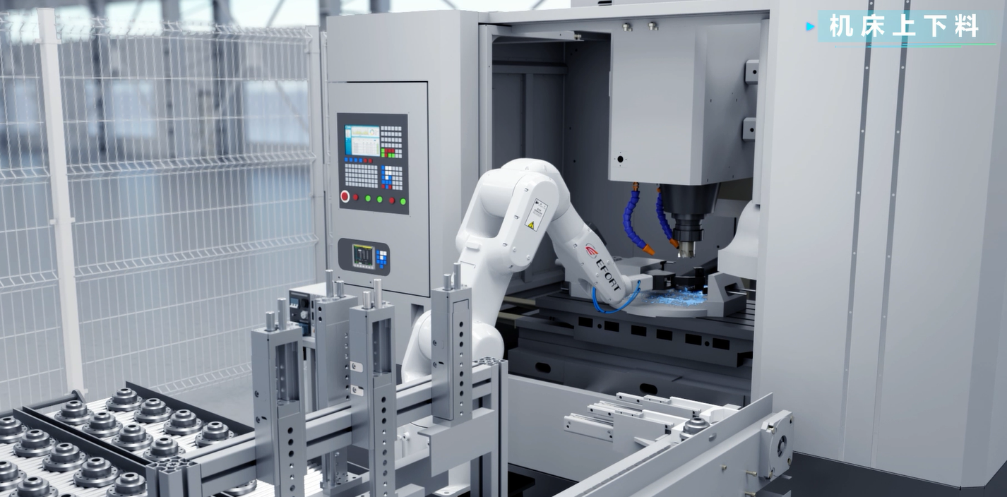 机床加工上下料空间狭窄,要求工件可准确放入夹具定位销孔,同时加工现场充满油污、水汽和金属屑,对机器人灵活性,精度和防护能力有严格要求。重载桌面系列机器人灵活的配置和纤细的机身,专为狭窄工作空间设计,高达0.02mm的重复定位精度,可保证工件放置精准,全密封机身可应对恶劣的油污水雾,是汽车零部件等小件加工场景的不二之选。